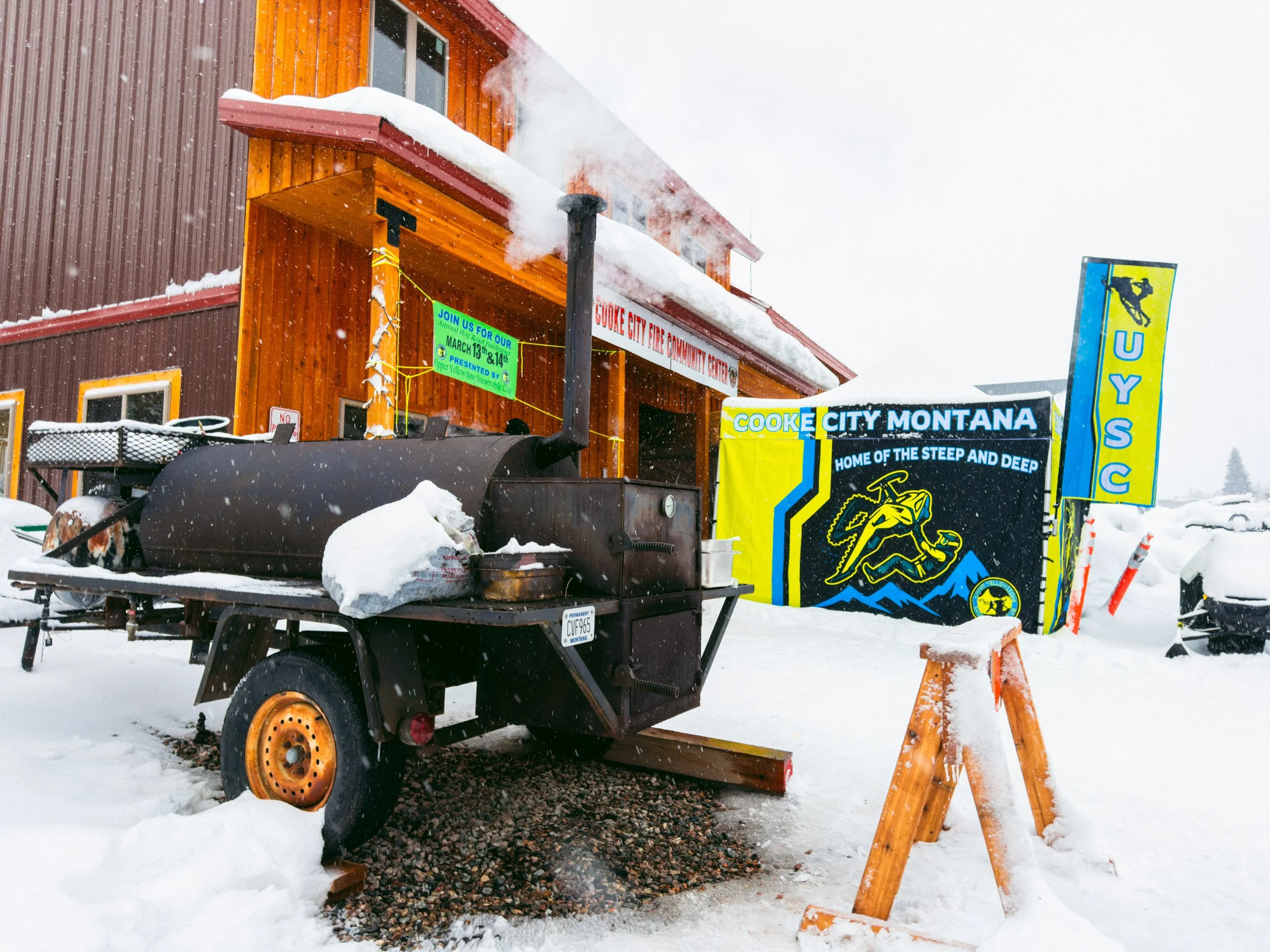 The 30th Annual Upper Yellowstone Snowmobile Club Hog Roast Fundraiser was one for the books with a Miracle March storm laying down fresh snow all weekend. Good food, Competitive Games, Big Prizes and good times were had by all. The Live Auction always provided and helped to get the UYSC that much closer to a new groomer. Thanks to everyone that came through for the weekend to help support the club and city we love. Here’s some photos from the weekend!